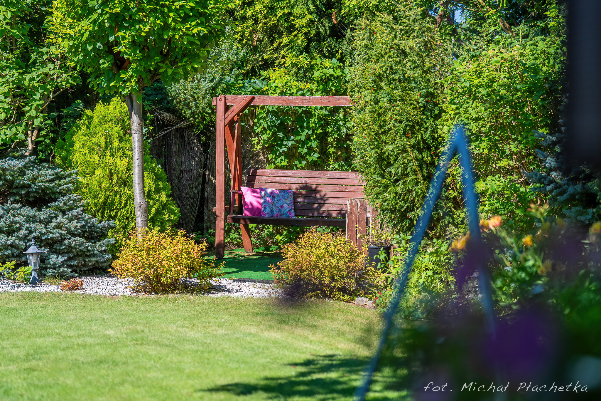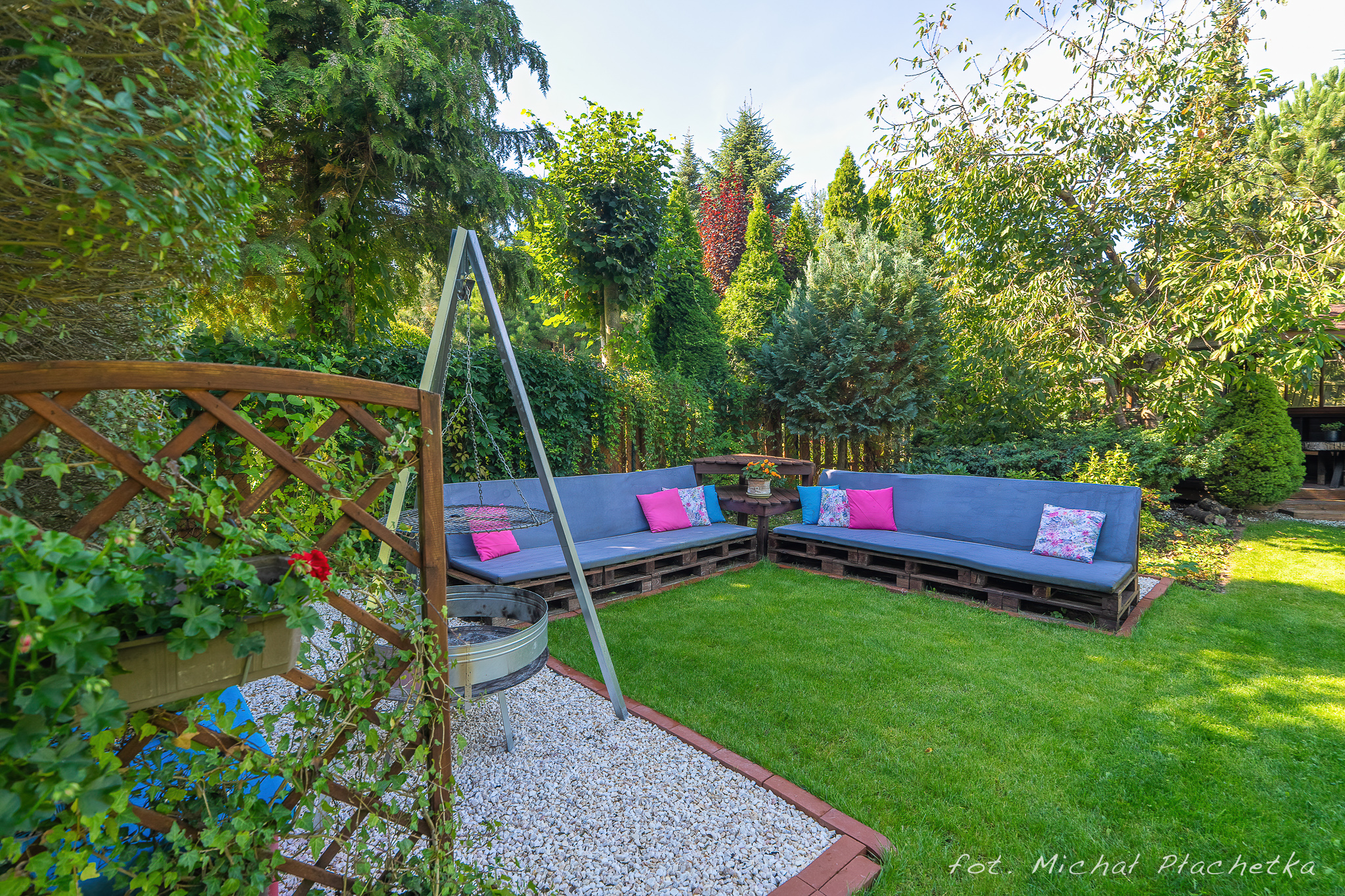 Przestronny, zadbany ogród z różnorodną roślinnością. Wyposażony w strefę relaksu i miejsce do grillowania, drewnianą altanę – doskonały do wypoczynku i spotkań w gronie najbliższych.