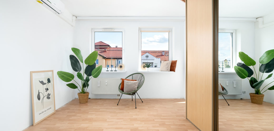 Dzięki możliwości połączenia kuchni z salonem można uzyskać nowoczesną, otwartą strefę dzienną z trzema dużymi oknami wychodzącymi na południe.
